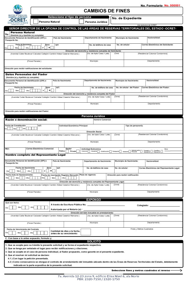 Formulario de para realizar gestiones relacionadas con los procesos para el arrendamiento con OCRET